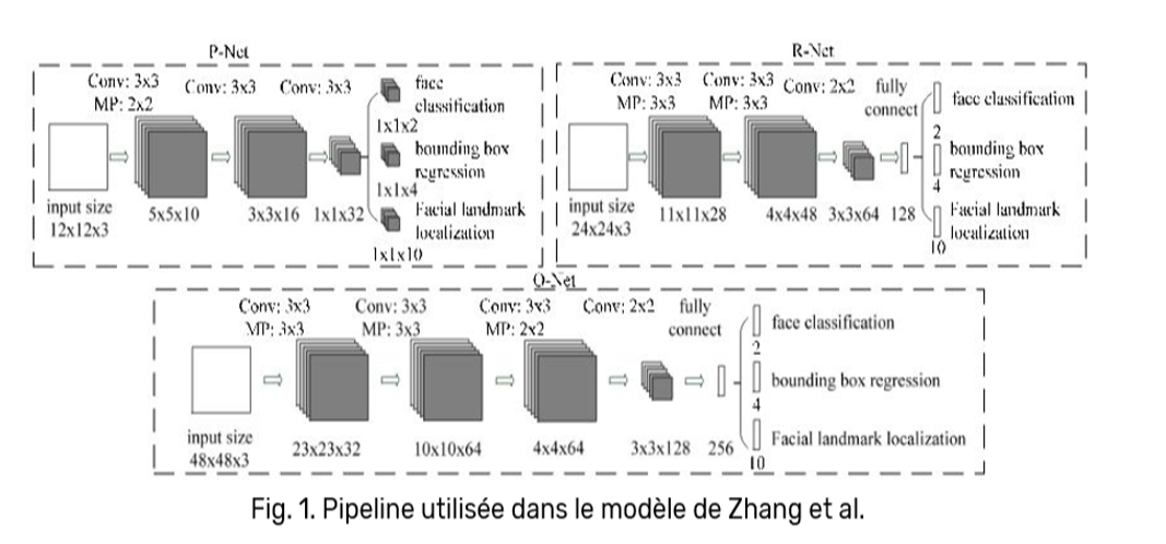 Deux auteurs scientifiques, Zhang et al., ont publié une méthode dédiée à ce sujet, consistant à détecter les visages en trois phases :