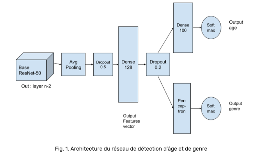 Concernant l’âge, il était initialement prévu d’utiliser une base ResNet-50/UTKFace (voir figue ci-dessous) :